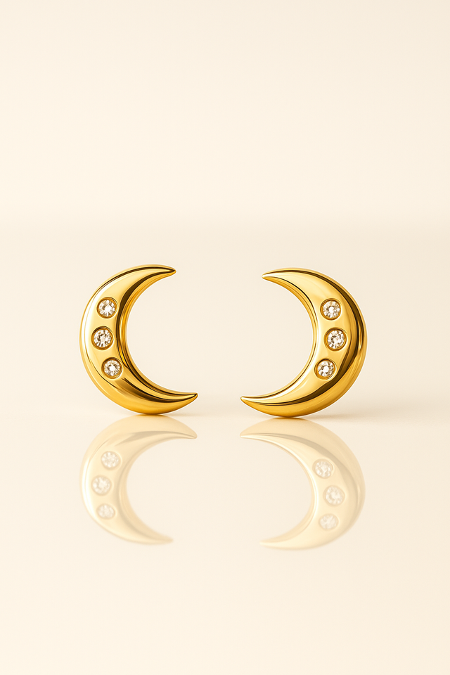 Crescent gold studs with diamond accent